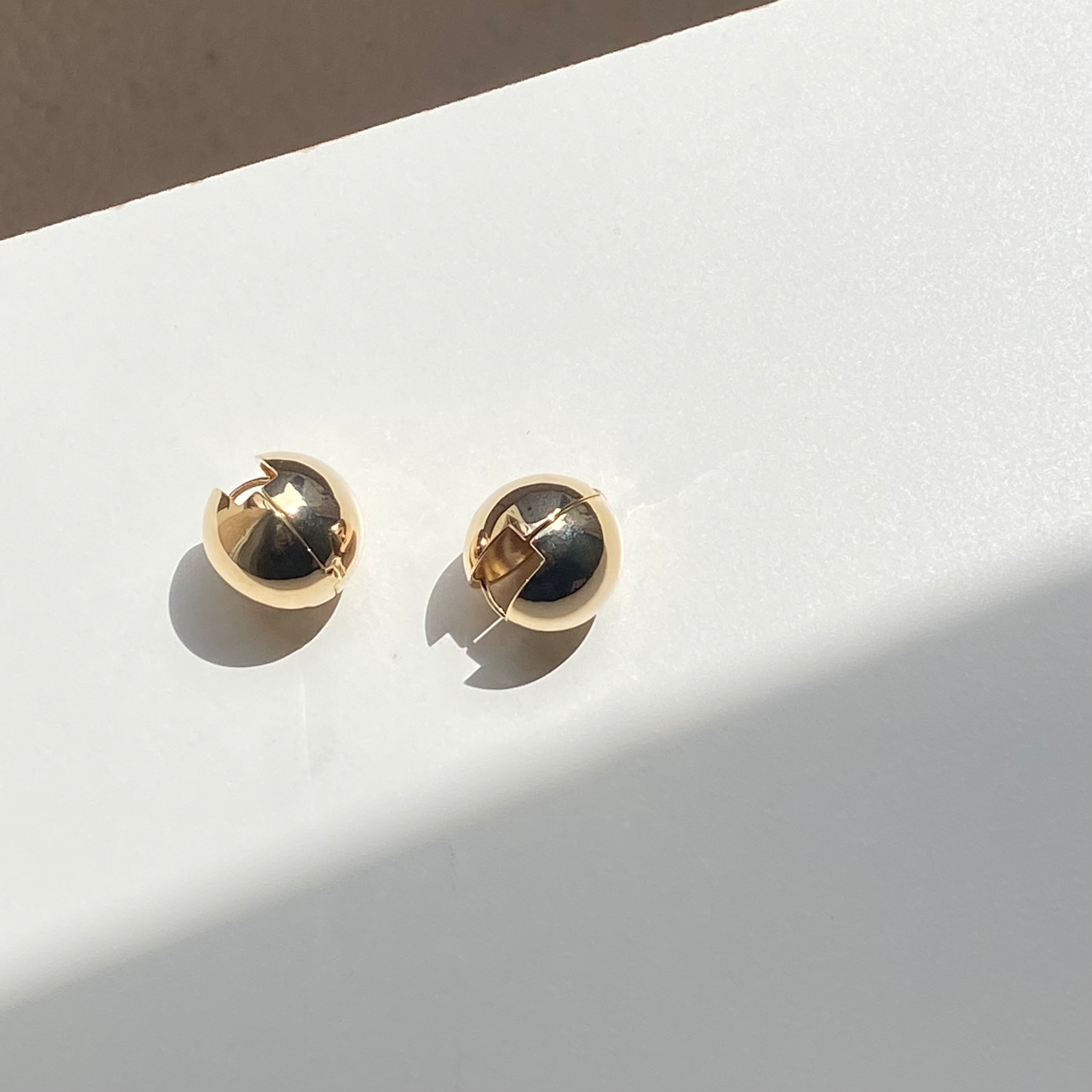 どこから見てもころんと可愛いメタルボールデザインのピアス。