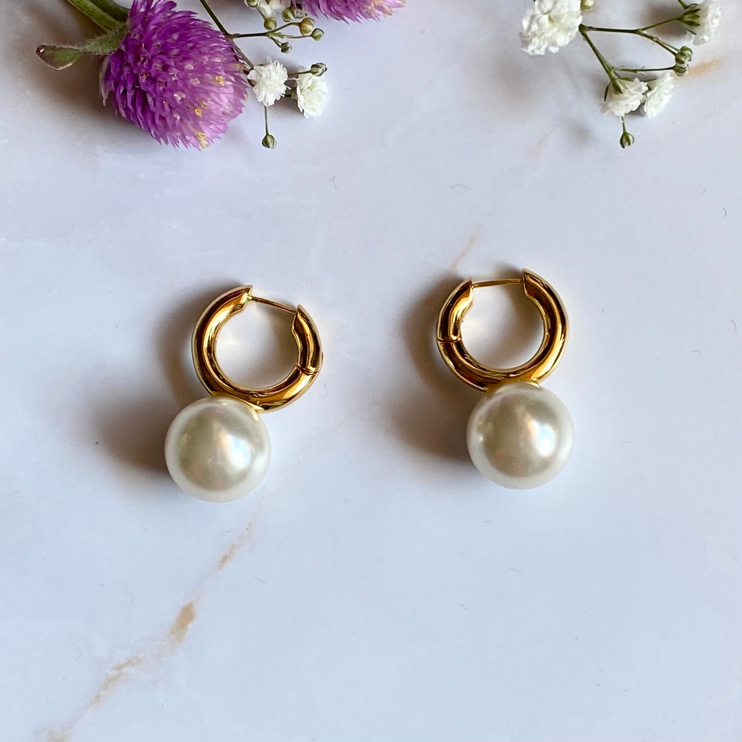 目を引くような大きなパールのデザインです。個性的で可愛いです。フォーマルコーデでもカジュアルコーデでもワンポイントになるに間違いないです。