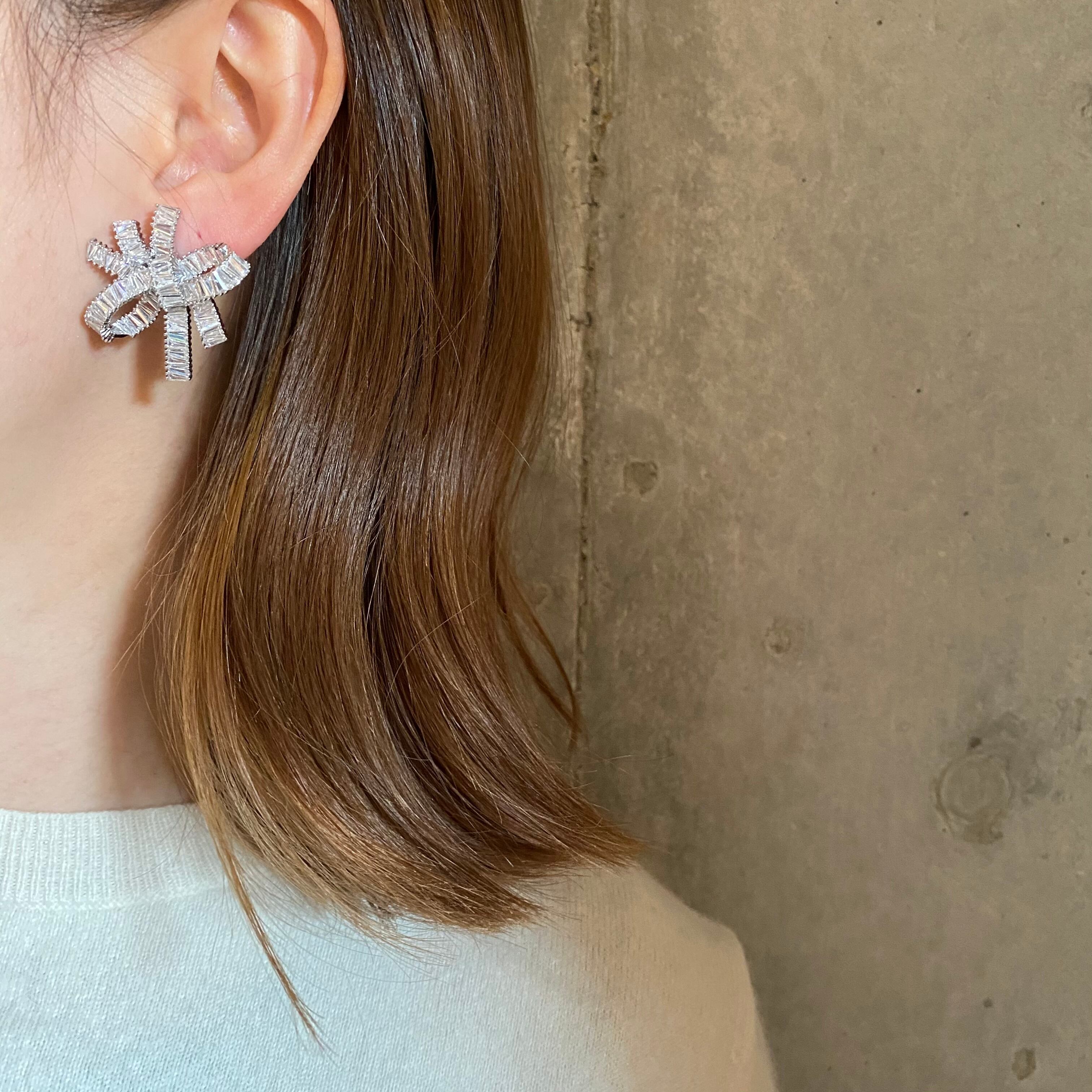 こちらのリボンピアスはとにかくキラキラします。プレゼントみたいな華やかなデザイン。リボンだけど子供っぽくなくとても存在感があります。プレゼントにも喜ばれます。