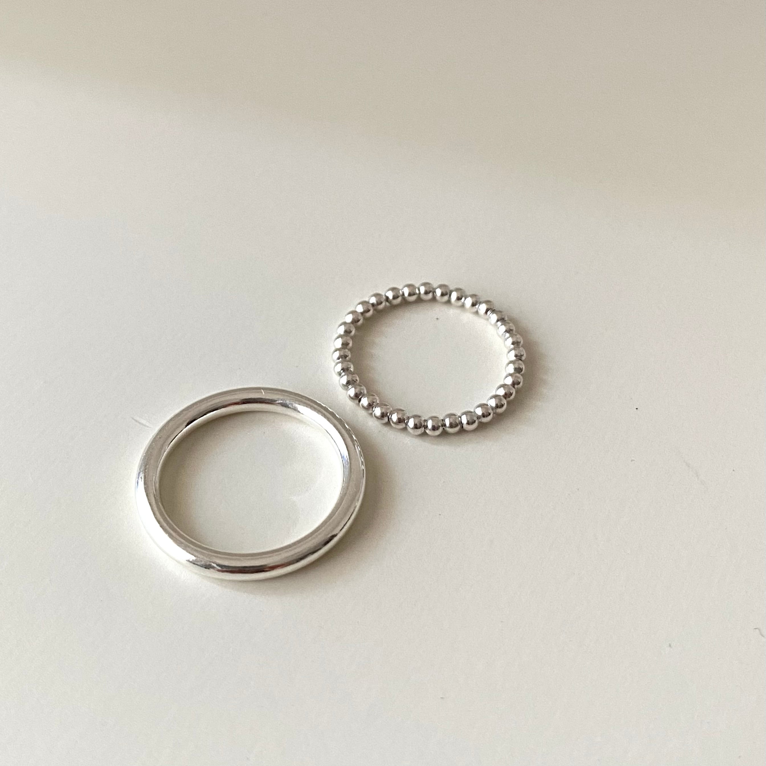 ボリュームリングや個性的なリングとの重ね付けには必ず登場するスタメン的な存在。